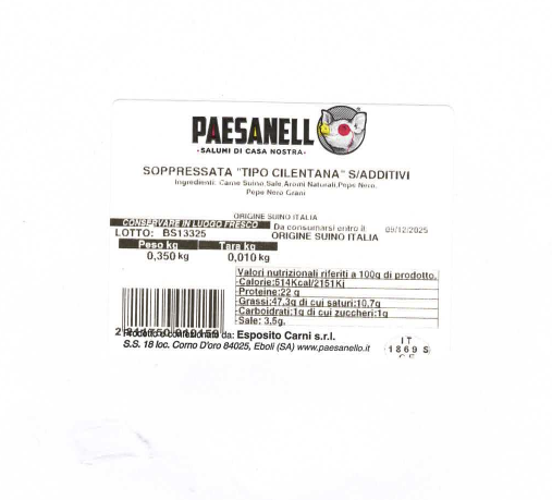 La soppressata cilentana Paesanello è molto più di un semplice salume: è una tradizione che si tramanda nel tempo, nata dalle mani sapienti dei nostri nonni e ancora oggi prodotta con lo stesso rigore e la stessa passione. Considerata la regina dei salumi nel Sud Italia, questa soppressata viene realizzata con carne di suino 100% italiano, selezionata con cura per offrire un gusto autentico e senza compromessi.